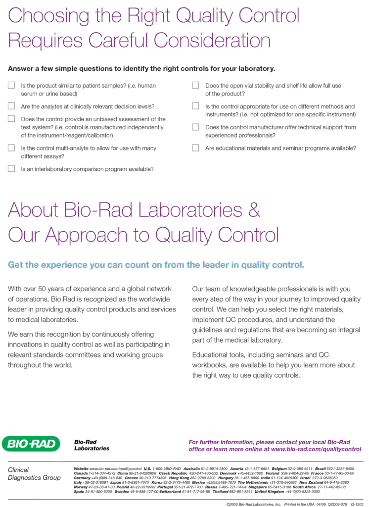 Patient test results provided by your laboratory allow health care providers to make critical, and potentially life-saving, diagnostic and therapeutic decisions. Regular quality control testing to confirm the precision of your test systems is the foremost way to provide more confidence that your patient results are correct.