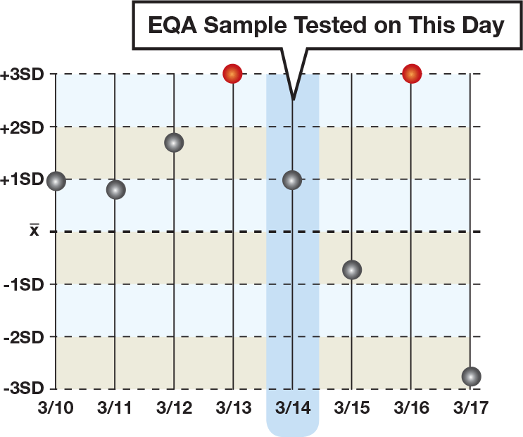 An EQA program provides valuable information that is relevant to a specific moment in time. When used in conjunction with daily controls, the laboratory has a more complete picture of assay performance.